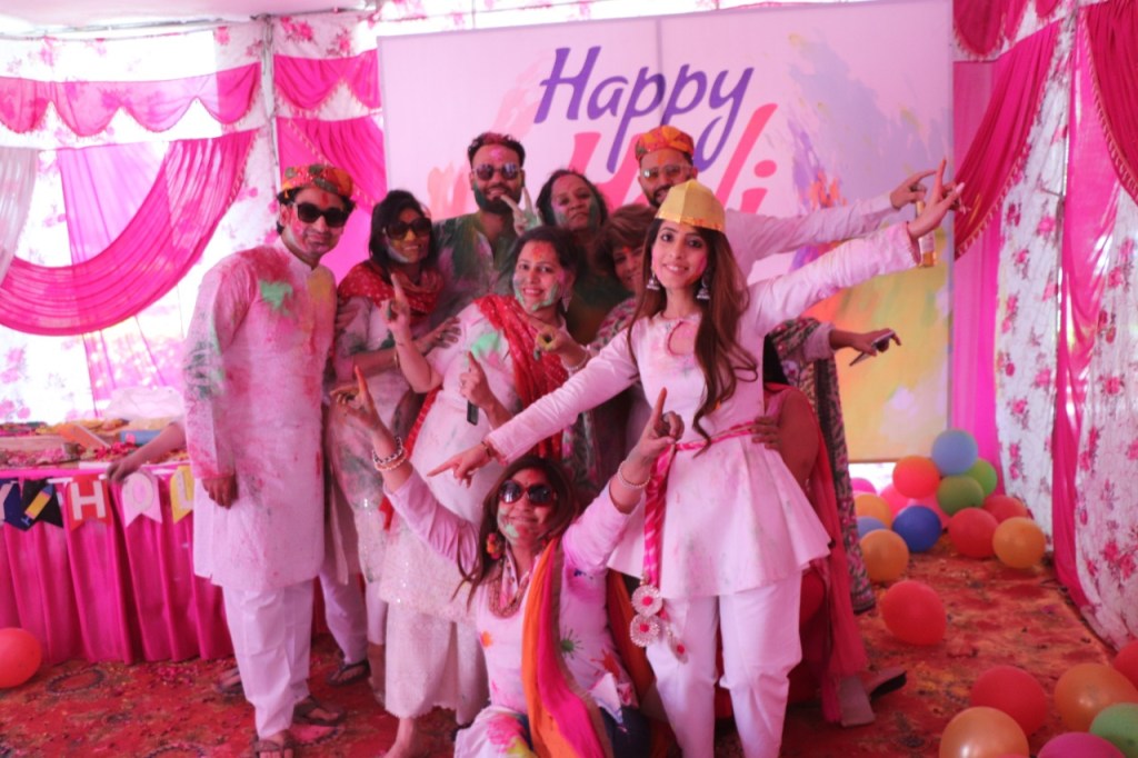 The First holi of SHEconnects curator Anju handa,s daughter Neha was celebrated at her residence .Neha and nikhil gupta got married last April and Holi celebrations was traditionally celebrated with all the relatives and near and dear ones .It was much fun with gulal,guzias and Dance. Everyone was dressed in white and had lots of fun and masti ……sistersNupur and neha ,brother in law Amit and Sunny ,Bua Meenu ,pradeep ji ,Saurabh,garuv ,Siddarth,jhalak and many more cousins of Nikhil stole the show with their Dance and unlimited masti.Gokul brother of Neha ,madhu ji Nikhils mother and prem Handa and Anju handa Neha,s parents too joined in the fun God bless the couple .
