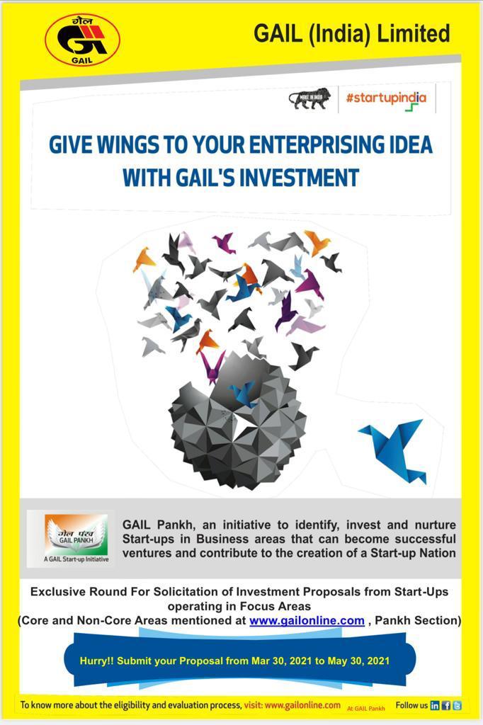 The Start-Ups that are interested in equity investment from GAIL can apply through link ‘GAIL PANKH’ on GAIL’s website